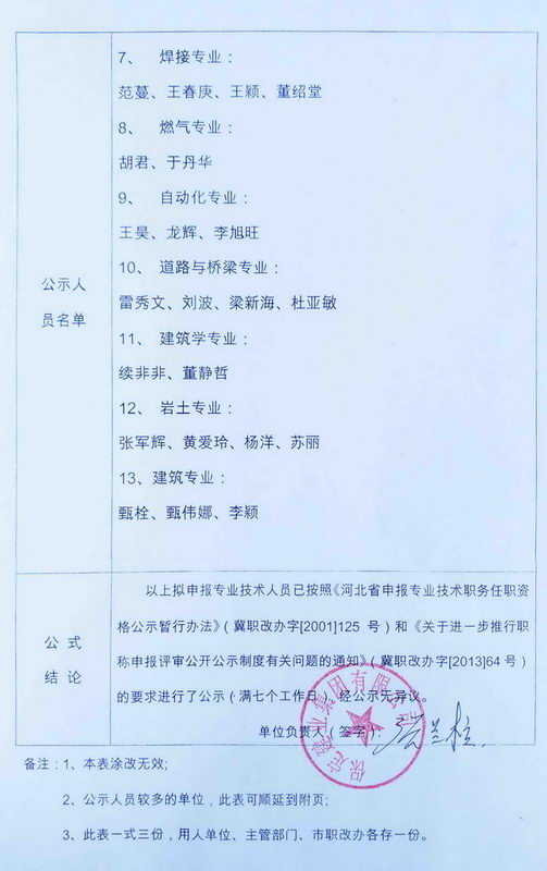 2015中級職稱擬申報人員方案公示